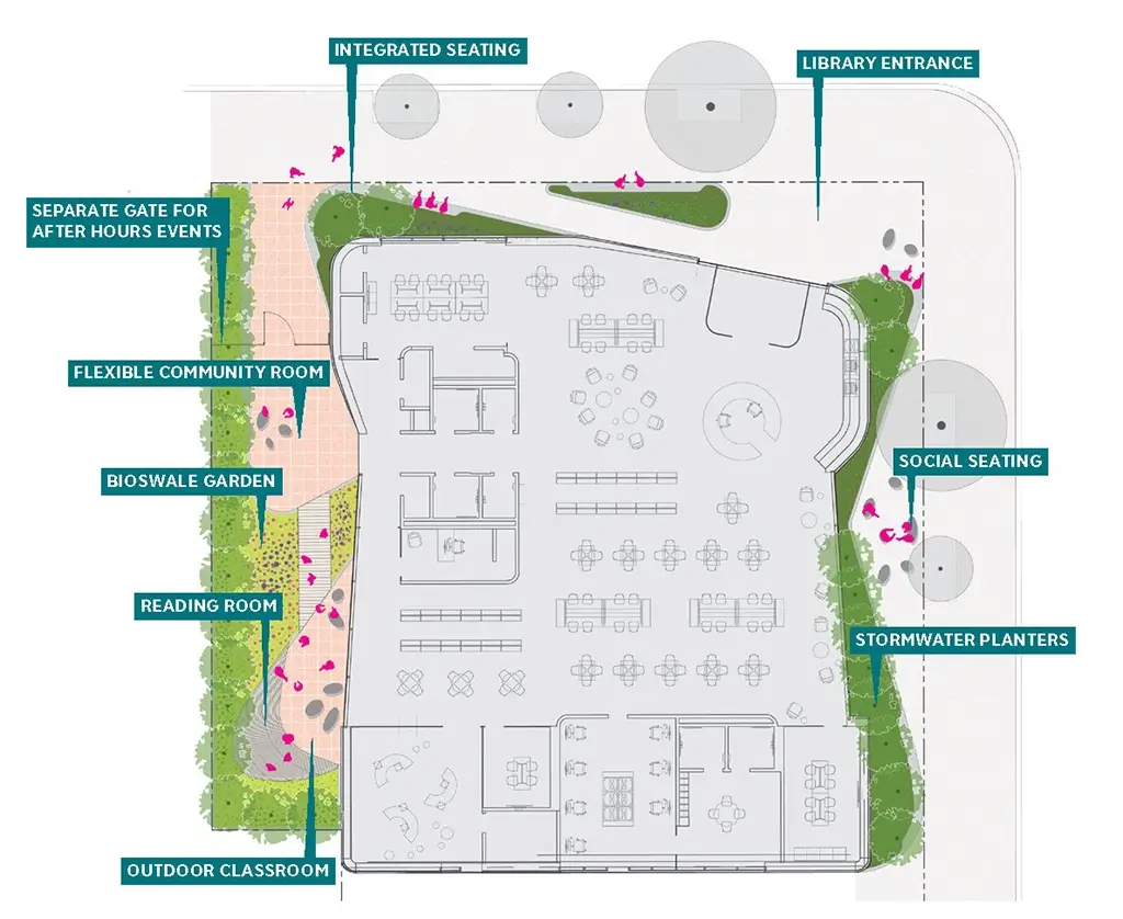 Brooklyn’s Red Hook Public Library is undergoing a comprehensive renovation to become the Brooklyn Public Library’s first Net Zero Building. First opened in 1915, the renewed space will feature a reconfigured interior with increased public areas and a revitalized exterior with outdoor seating and native greenery.